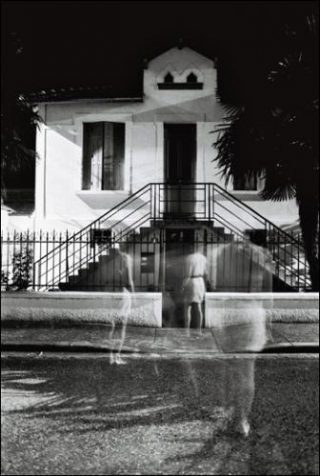 A.J: Je travaille aussi avec un appareil photo numérique, un petit Lumix, qui me sert de bloc-note photographique. Pour cette recherche en particulier, l’argentique s’imposait car je ne prévisualisais que des photos en noir et blanc. C’est toujours le même appareil Nikon, depuis près de vingt-cinq ans, qui joue le même rôle. Ce sont les formes des façades, des pignons, des fenêtres qui ont elles-mêmes donné leur forme aux images. Toutes se sont prêtées au jeu. De même que, par contre-point inévitable, le soleil a appelé la nuit, l’immobilité architecturale imposait le mouvement des corps. Les corps transparents sont les passe-murailles que tout un chacun rêve de devenir une nuit ou un jour même. Ces corps me sont venus d’images anciennes, réalisées dans les entrepôts désaffectés de Bercy, la nuit, avant la construction de la grande bibliothèque, avec d’autres étudiants de Paris VIII, vers 1990. Ces corps transparents viennent aussi d’images que je venais de découvrir en lisant l’extraordinaire journal d’Alix Cléo Roubaud, une sorte d’Alice inversée, retournée en négatif, qui serait partie de zéro vers l’infini.