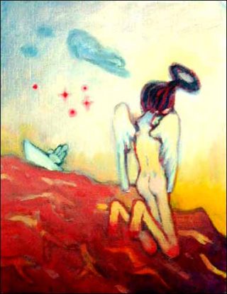 — Sans titre, 2003. Acrylique sur toile, bois. 27 x 22 cm.
