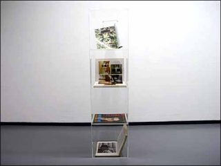 — Joseph Beuys, 2006. Cubes en Plexiglas transparent, livres, magazine. 130 x 32 x 32 cm.