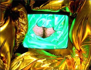 — Sans Titre (cul vert), 2003. Technique mixte, moniteur DVD, DVD. Environ 130 x 120 x 70 cm.