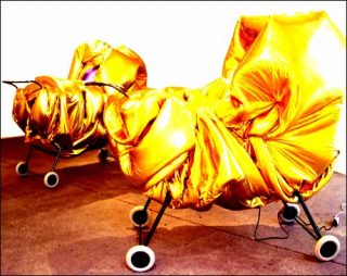 Les Baba’s Islands dorés de l’artiste napolitain arborent des objets poilus : des parasols, des chaises longues et des sacs de couchage entièrement recouverts de cheveux synthétiques noirs. Parce que nos fantasmes nous font rêver que sur les îles les existences « de tout poil se poilent à poil » ? Ou parce que notre animalité s’est déplacée sur nos objets familiers ? La longue barbe du naufragé aurait-elle poussé dans les épidermes des ustensiles ?