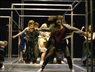 Le chorégraphe semble hésiter entre la profusion des détails qui font la matière envoutante des premiers volets et une certaine géométrie des lignes et des ensembles, supportée par la structure métallique à volumes variables qui constitue le seul décor, maniable à volonté. Le plasticien Antony Gormley a imaginé la tour de Babel, une création au graphisme minimaliste et modulable qui évoque à tour de rôles un urbanisme utilitaire, les blocs de solitude qui enferment l’homme contemporain, les containers qui transportent des corps entassés, immigration indésirable, ou enfin des flux et lignes d’énergie.