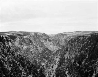 Le temps est également suspendu dans la photographie Colorado de Geert Goiris. L’image abordée en termes de plasticien juxtapose paysage réel et mental. Les détails minutieux sont rendus par le procédé de la longue exposition. Le paysage existe dans un temps photographique calme et menaçant qui échappe au temps humain. Il n’est pas une capture de l’instant mais la saisie d’un temps qui n’existe que pour lui-même.