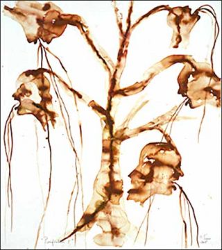 Barthélémy Toguo: Exactement, ce corps, qui est beau, est présent dans ces aquarelles que j’ai eu l’occasion de montrer durant ces deux dernières années à Paris. Ces dessins ont d’abord une dimension esthétique tout en exprimant différents ressentis, que ce corps soit noir, blanc ou jaune, du Nord ou du Sud. Cette beauté provient également du medium utilisé, l’aquarelle, fluide, qui se dilue. Parfois je place des additifs sur ces corps, des aiguilles qui viennent sublimer la douleur, douleur de plus en plus exprimée par le mouvement des corps, leur position accidentelle. Cette dimension universelle est renforcée par la présence d’animaux, de végétaux, de fleurs que l’on n’associe à aucun territoire.