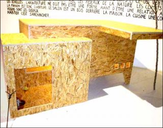 — Paysage canin. Prototype de niche corbuséenne en tripli, volière.