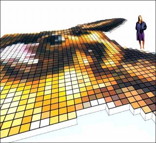 Dans le paysage sont sédimentées des pratiques et activités humaines, des réalités historiques et sociologiques. Il est une production indistinctement collective et individuelle comme la mosaïque Mabrouk formée de mille mini-jardins de 15 x 15 cm construits par mille participants différents dans des boîtes en plastique. Chacun a réalisé dans sa boîte un jardin doté d’une couleur définie. L’assemblage des mille boîtes forme, en mosaïque, le portrait d’apparence pixellisée du célèbre chien Mabrouk, héros de l’émission de télévision Trente millions d’amis.