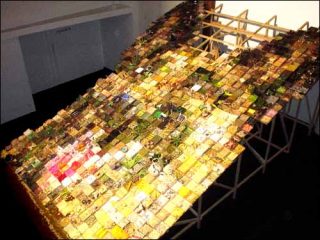 — Mabrouk, 2003. 1000 mini jardins (15 x 15 cm), structure en bastaing. 7 X 5 m.