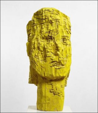 Ainsi de la série des Femmes de Dresde (1990) qui de loin produit une saisissante impression jaune, uniformément jaune. De près, les têtes apparaissent taillées en creux, en dedans, comme si l’artiste avait fouaillé les visages jusqu’à en extraire les traits et, parvenu à ce point, les avait laissées là , la face fixe rencognée dans ses sutures. Pourtant ces figures comparaissent sans violence, inviolées, comme si Georg Baselitz les avait abrasées doucement.
