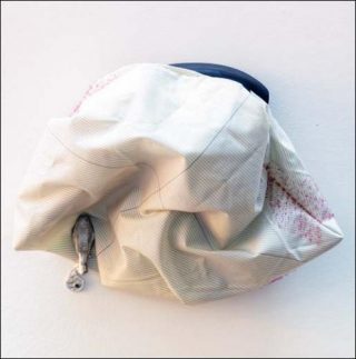 Le cÅ“ur de l’exposition est lui-même désaxé puisque l’espace de la galerie n’est que le récepteur d’une station de radio que David Douard diffuse depuis internet. Sa mission est d’émettre en continu des poèmes lus et malmenés par la chanteuse Pricilla Ay Avah dont la bouche est entravée par un curieux bijoux, mi-mors, mi-dentier.