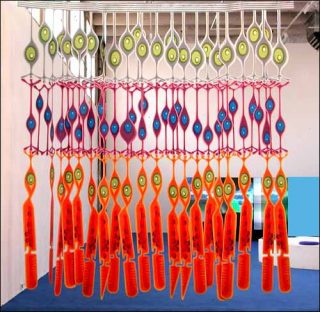 Le Rideau est une coupe de la rétine démesurément agrandie, inspirée d’un article paru dans la presse quotidienne. Voir en grand les couleurs de l’œil, rendre fonctionnel par son emplacement dans l’exposition un organe humain devenu lieu de passage oblige à une nouvelle perception des choses, une nouvelle attention au détail.