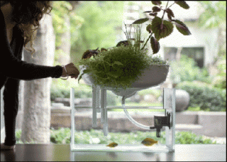 – Floating Garden, 2009. Aquarium, plantes, sable, système de filtration 100% naturel. Disponible en version céramique ou plastique.