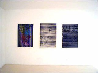 Mais Benoît Platéus rompt rapidement avec ce formalisme apparent qui emprisonne le regard et hypnotise le spectateur, en y glissant des agents perturbateurs, des formes naïves d’intervention directe. Ainsi, les hachures se voient parasitées par des dessins informes et irréguliers, des formes anthropomorphes grossières, proches du dessin enfantin, du gribouillage.
