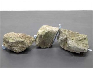 — Gabriel Kuri, Two Arrested Clouds, 2010. Rocs, papier. 30 x 160 x 60 cm.