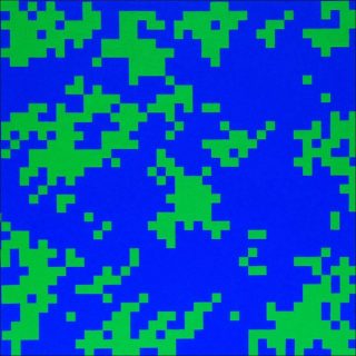 Au fil des tableaux (Blank dans lequel les lettres du mot « blank » inscrites en blanc sur un fond bleu, se chevauchent et se confondent ; Camouflage, toile carrée recouverte de pixels bleus et verts imitant un camouflage), l’emploi du bleu et du vert réoriente notre rapport aux objets. Alors qu’ils évoquent de prime abord des éléments naturels, réels et familiers, c’est finalement leur virtualité qui s’impose.