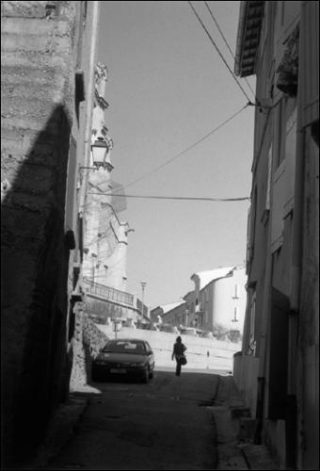 « Il faisait très beau, ce jour-là avec le soleil d’hiver quand il brille d’un éclat si pur dans l’air! Nous marchions juste dans les rues et ruelles de Digne, avec les montagnes dans le fond… C’était une errance au pays des escaliers, et l’appareil de photo n’arrêtait pas de me démanger. Donc… plein de photos des rues, des angles, juste comme ça, telles quelles, en passant, sans effet de beauté, mais tout de même pleines de cubisme invisible… » (Bernard Plossu)