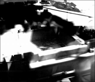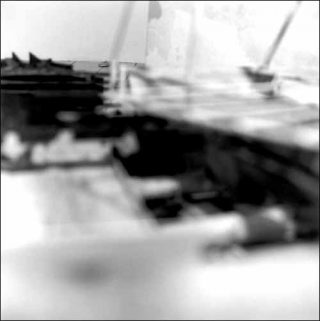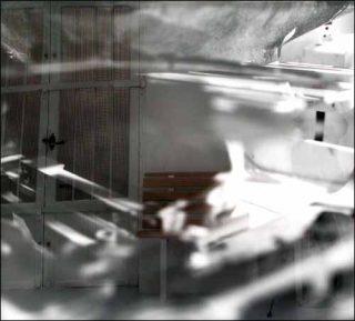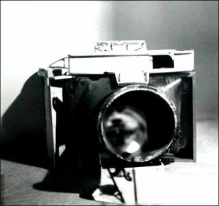 À l’entrée de la galerie, un clin d’œil en forme d’image également obtenue par les procédés qui viennent d’être décrits : une photo d’appareil photo d’un modèle reflex inconnu, partiellement démonté semble-t-il. Le boîtier est parfaitement net à l’exception du reflet flou que l’on perçoit dans le miroir visible au fond de l’objectif évidé. C’est comme un avertissement : attention images flouées. Bien vu !