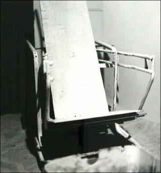 On croit voir une chaise longue, mais on découvre en réalité un simulacre, l’association hybride d’une chaise et d’un dossier renversé. Avec humour, Voïta décline Magritte en un «Ceci n’est pas une chaise longue» — distance, ironie, leurre… Par l’association éphémère de fragments hétéroclites, il définit la syntaxe d’un univers qu’il crée au fur et à mesure.