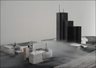 Au FRAC Centre, Bertrand Lamarche présente un ensemble d’œuvres où se rejoue la question de la perception. The Fog Factory (2005, coll. FRAC Centre) se donne comme la maquette-modèle de la gare de Nancy, immergée dans la brume, qui transforme la maquette en architecture entropique.
