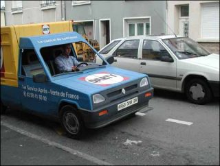 Dartymobile, 2002. Installation mixte, réplique en bois à l’échelle 1 d’une Renault Express. Vidéo. 3 min. 183 x 190 x 380 cm.