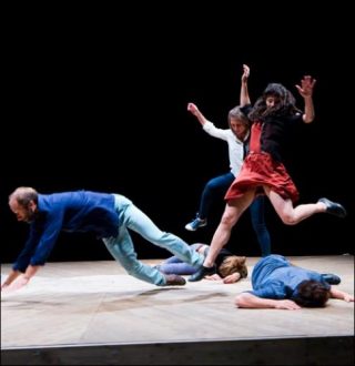 On ne jongle pas chez Bourgeois, c’est même exactement le contraire: c’est l’acrobate, le voltigeur qui est « jonglé » par des forces qui le dépassent. Ici c’est un plancher «contraint» qui met tout en mouvement. Yoann Bourgeois y explore inlassablement le point de suspension qui ouvre tous les possibles pour une pièce vertigineuse, où la plus grande virtuosité n’est jamais démonstrative. Et c’est en cela que ce nouveau cirque a tout à voir avec la danse. L.G.