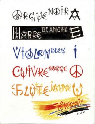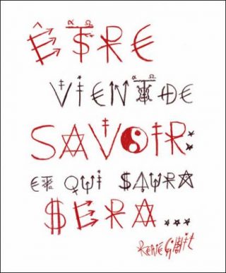 Poète de la rue, à partir de 1969, Jacques Villeglé repère les symboles et les sigles imprimés ou tracés à la main sur les murs et les affiches et crée son alphabet socio-politique: le A des anarchistes inscrit dans un cercle, S le signe dollar. La Suite pour René Ghil, créée pour la Biennale de Melle 2013, est présentée à la Médiathèque de Melle.