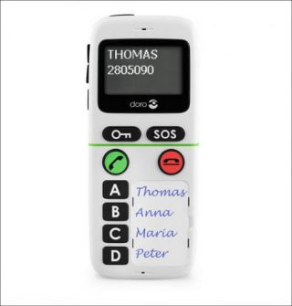 ― DORO HandlePlus, HandlePlus 334gsm IUP. Téléphone portable pour personnes âgées ou handicapées. Dans l’exposition «Comfort», Biennale du design de Saint-Etienne.