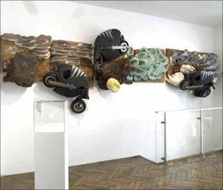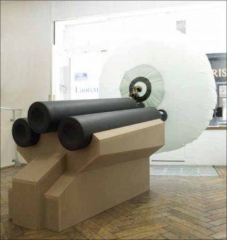 Voir les choses en grand, ne pas confiner l’art contemporain dans des problématiques étouffantes, voilà quelques unes des ambitions qui agitent cette «Big» exposition à la galerie Loevenbruck. Gigantisme, macro et microcosme au coude à coude, les artistes jouent sur les dimensions et nous font pénétrer dans des univers inédits. Étrange étrangeté : le jeu sur les proportions fait doucement flotter nos perceptions. C’est un peu comme si l’on était projeté dans le Voyage fantastique de Richard Fleischer. L’installation When I Have a Skull Full Of Wind de Stéphane Sautour — d’imposantes bouteilles de plongée: pas moins de 200 x 200 x 245 cm — nous fait tout à coup douter de notre taille !