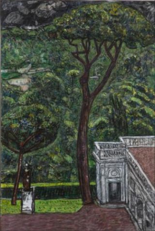 C’est à la faveur de deux séjours successifs à la Villa Médicis qu’il se lance dans la réalisation de dessins de Rome, de la Villa et de son jardin. Il raconte ces lieux mythiques et révèle le rapport du peintre à la nature. C’est parce que ces paysages connus ont été maintes fois représentés par des artistes illustres, qu’ils se chargent, pour l’artiste, d’évocations de cette histoire de l’art, mais surtout de sa propre enfance, de ce «sentiment de déjà -vu» lui procurant son inspiration.