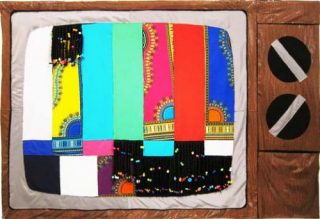 L’exagération des gestes et des postures ainsi que l’entrelacement de blocs de couleurs franches et de motifs chamarrés accroissent la théâtralité et l’exaltation qui transparaissent dans ces collages. «Live and In Color» dépeint l’exubérance des personnes de couleur telle qu’elle fut historiquement dépeinte au public de la télévision nationale, mais aussi l’exagération de leurs attributs psychologiques et gestuels dans la culture populaire.