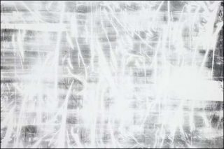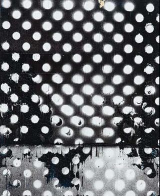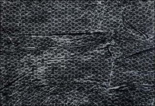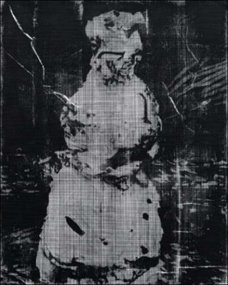 Enfin un tableau monumental est composé de traces spectrales blanches sur fond noir, comme le Suaire de Turin. Sur la toile noire, les touches de pinceau sont remplacées par des empreintes de tissus, de draps ou de rideaux imprégnés de peinture blanche. L’idée du négatif s’impose encore, à cause de l’empreinte, de la copie figée d’un objet réel sur une surface plane, comme en photographie, comme aussi les anthropométries d’Yves Klein.