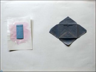 Pour saisir le territoire dessiné par ces œuvres, il est utile d’en raconter l’histoire. Après la série Burn Out réalisée par pyrogravure sur papier, Laurent Pernel cherche à libérer son geste et à s’affranchir d’un rapport pointilleux à la représentation. Il commence par préparer les fonds d’un paquet de feuilles en y appliquant un lavis bleu et vert (couleurs génériques du paysage) à travers de la dentelle. Cette recherche de «fond» n’a rien d’anodin si l’on considère la polysémie du terme. Avant même d’en venir au trait, il construit une boîte pour les contenir.