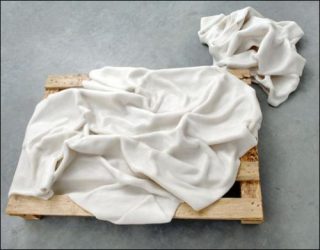 Dans Battes, des chaussettes reçoivent une coulée de plâtre qui en les remplissant engendre les jambes absentes. Empilées ou disposées seules dans l’espace, ce sont les corps qui finissent par manquer. Dans le Cadeau, en revanche, la semence de tapissier couvre d’une fourrure soyeuse mais hérissée le fond d’une baignoire. Le corps est alors ce qui habite l’enveloppe. Corps de l’objet mais aussi corps qui aurait pu se lover dans l’objet.