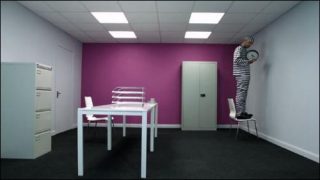 Plus tragique, 10×10 (2011) est un long travelling descendant (figure rare dans leur vocabulaire), chutant lentement le long d’un immeuble de bureaux et saisissant à chaque étage les actions absurdes qui s’y déroulent. Le mouvement de caméra y acquiert une rare force narrative, en jouant habilement avec le surgissement d’objets au premier plan et la récurrence de certains gestes. Par ce traitement du récit, l’action devient scène, l’artiste acteur, et le dispositif glisse nettement vers la cinématographie.