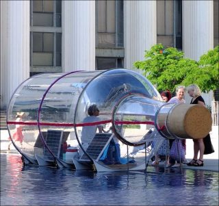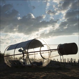L’exposition « Bouteille » au Frac Provence-Alpes-Côte d’Azur est consacrée au projet entamé en juillet 2015 par Abraham Poincheval : remonter le cours du Rhône, d’une plage de Camargue à sa source, dans les montagnes suisses, enfermé dans une bouteille géante. Le voyage est ponctué d’escales dans des villes, où est alors installé le camp de base. Le Frac abrite ce dernier, au sein d’une exposition qui marque l’arrivée de la Bouteille à la moitié de son parcours.