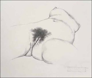 — Study after Gustave Courbet’s Origine du monde, 1992. Crayon sur papier. 46 x 55 cm.