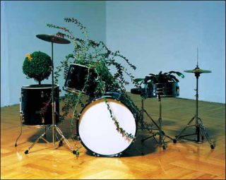 Bruno Peinado. Par rapport à l’art d’abord, et à une pratique de jeune artiste, car les spectateurs sont toujours dans une quête de quelque chose de nouveau, d’original, d’une espèce de renouvellement perpétuel. Dans mon travail, cela m’intéressait de jouer avec ces notions de nouveauté, d’originalité dans une structure un peu paradoxale. Bien sûr, il y aura toujours un renouvellement, mais cette exposition va jouer aussi beaucoup sur des notions de temps de pose, d’arrêt, d’immobilité, de cassure ou même de panne.