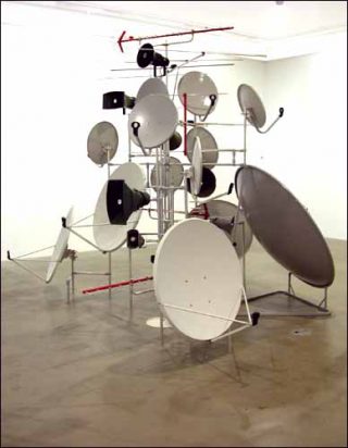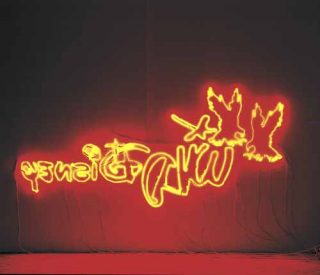Il s’agit de mettre à bas cette idée de « faire toujours du nouveau ». Je ne fais que récupérer, remettre en jeu des choses qui sont déjà là . La mise à distance passe souvent par le retournement des images que j’emprunte. Elles sont d’abord détournées de leur sens, puis retournées (mises à l’envers), mais aussi retournées vers le système médiatique qui les produit. Ces symboles que je prends dans le flux des signes et des logos qui passent autour de nous, je les renvoie, comme par un petit effet miroir.