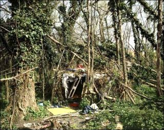 — Abris #6, Calais, avril 2007, 2007. Ilfochrome collé sur aluminium, encadrement plexiglas. 126 x 159 cm