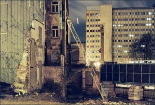 Dans la série «Quartiers de l’Europe», quartiers des institutions, Jonathan Vandenheuvel joue avec l’éclairage public nocturne qu’il investit d’un rôle majeur. Il ordonne les espaces désertés de toute présence humaine, il les hiérarchise de telle sorte que les lumières brûlent et les obscurités bouchent. Les bords sont à l’intérieur et créent des perspectives ne donnant que sur un fond qui «fait figure opaque au regard aveugle». L’artiste choisit d’omettre la fonctionnalité des bâtiments pour en révéler l’aspect monumental.