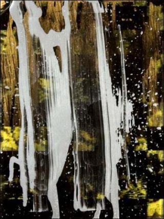Certains graphismes d’aujourd’hui évoquent le graffiti par l’utilisation de la bombe et du grattage. Cette intervention graphique, radicale et violente, habituellement appliquée sur les murs de la rue, apparaît chez Gavin Perry comme une dégradation volontaire des motifs géométriques inspirés de l’op-art, caractéristiques de son style. Motifs que l’on discerne encore ici tels d’élégants palimpsestes.