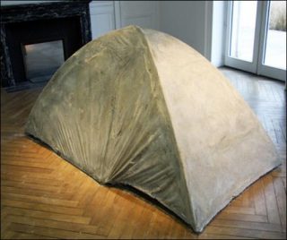 «Pendant ce temps, je travaillais à faire de cette grotte un lieu assez spacieux pour m’en servir de magasin ou d’entrepôt, de cuisine, de salle à manger et de cellier; quant à mon logement, c’était ma tente, hormis à certaines périodes de la saison humide, où il pleuvait si fort que je n’arrivais pas à rester au sec, ce qui me poussa par la suite à couvrir tout mon enclos de longues perches en forme de poutre que je calai contre le rocher et garnis de jonc ou de grandes feuilles d’arbre en guise de chaume.» (Daniel Defoe, Robinson Crusoé)