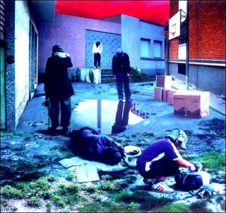 Botto & Bruno exhibent cette condition urbaine contemporaine dans de grands photomontages dont l’emphase frise le kitsch. Facture ostensiblement manuelle et distorsions de couleurs ne sont pas sans rappeler les productions psychédéliques des années soixante-dix. Des jeunes gens sans visage y peuplent sans raison des lieux désaffectés, crasseux, et sans perspective, anéantis dans une lumière froide que plombe un ciel lourd couleur sang. Ici pas de transport hallucinogène vers un ailleurs merveilleux, l’errance reste désespérément emprisonnée.