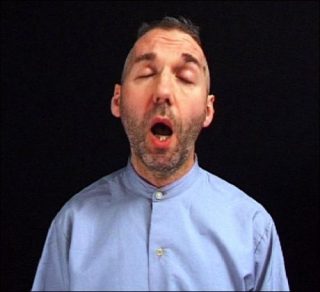 Ce, à travers une gestuelle corporelle et des mimiques qui forcent légèrement le trait tout en évitant la caricature. Mais dans la vidéo qu’il présente, Cantique, c’est d’un portrait sans parole qu’il s’agit puisqu’au propos s’est substituée la musicalité d’un chant, celui de l’artiste vocaliste Claire Bergerault. Par la modalité de présentation qu’il a choisie, celle du polyptyque, il nous propose une transcription polyphonique d’un corps en donnant du sens par la tonalité pure et ses modulations.