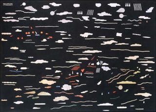 De la même façon que Jochen Gerner a encouragé un décloisonnement de l’univers de la bande dessinée et a tracé des ponts entre elle et l’art contemporain, l’œuvre de Fabio Viscogliosi traverse différents média avec un même sens de l’épure. L’apparente légèreté de son travail s’exprime particulièrement ici, à travers des peintures faites de tracés libres, en pointillés ou en traits ténus et d’aplats colorés qui semblent laissés au hasard, dans une manifeste volonté de lâcher prise. Ailleurs, des formes géométriques trahissent des intentions formelles plus strictes, suivent des logiques, architecturales et hésitent entre abstraction et figuration.