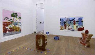 — Broken Beach-Side Brick Wall and the Giant Yellow Geranium, 2007-2008. Peinture acrylique, mine de plomb. 249 x 206 cm