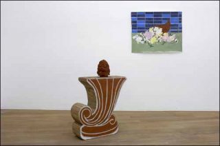 — Cornucopia Vase Pedestal and Floral Brick Nugget, 2007-2008. Bois de récupération, pépite de plâtre, colle, contreplaqué, poussière de briques. 106 x 78 x 27,5 cm