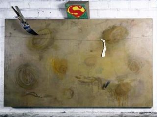 Une reprise en charge du fait pictural dans sa richesse et sa vitalité, et ce même par le biais de l’autodénigrement de la peinture et de son objet, pris dans la comédie burlesque de l’impossibilité de peindre, tout en y parvenant par un biais paradoxal..» (Extrait d’un texte de Frédéric Valabrègue)