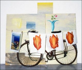 Ainsi, sur des grandes lithographies qui tels des modules se regroupent dans des ensembles où leurs places semblent permutables, des représentations d’objets ordinaires (pinces à linge, balais, singe en peluche…) dialoguent avec des motifs ornementaux (murs de briques, formes évoquant certains papiers peints…), couche sur couche, les objets, reproduits en offset, servant ici de fond, et les motifs, en litho, venant s’y poser à la façon de rehauts qu’un peintre adepte de la transparence viendrait délicatement rajouter.