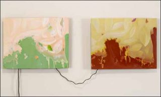 — « Sans titre » (jumeaux), 2006. Acrylique sur bois et dispositif sonore. (60 x 46 cm) X 2