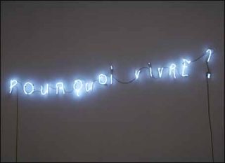 Dans un abîme d’ambiguïté même, à la lecture de l’installation murale signée Claude Lévêque. Pourquoi vivre? scande-t-il sur le mur du fond, dans une écriture hésitante et malhabile. Paroles troublantes, paroles d’échec quand toutes les forces nous abandonnent. Mais paroles de questionnement et prémices d’un espoir tranché dans le doute. Pourquoi vivre? pour lutter et dépasser ses limites. Pour exister.